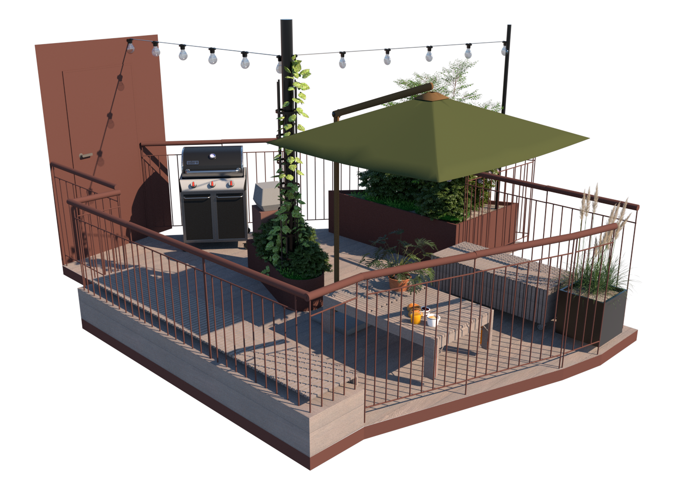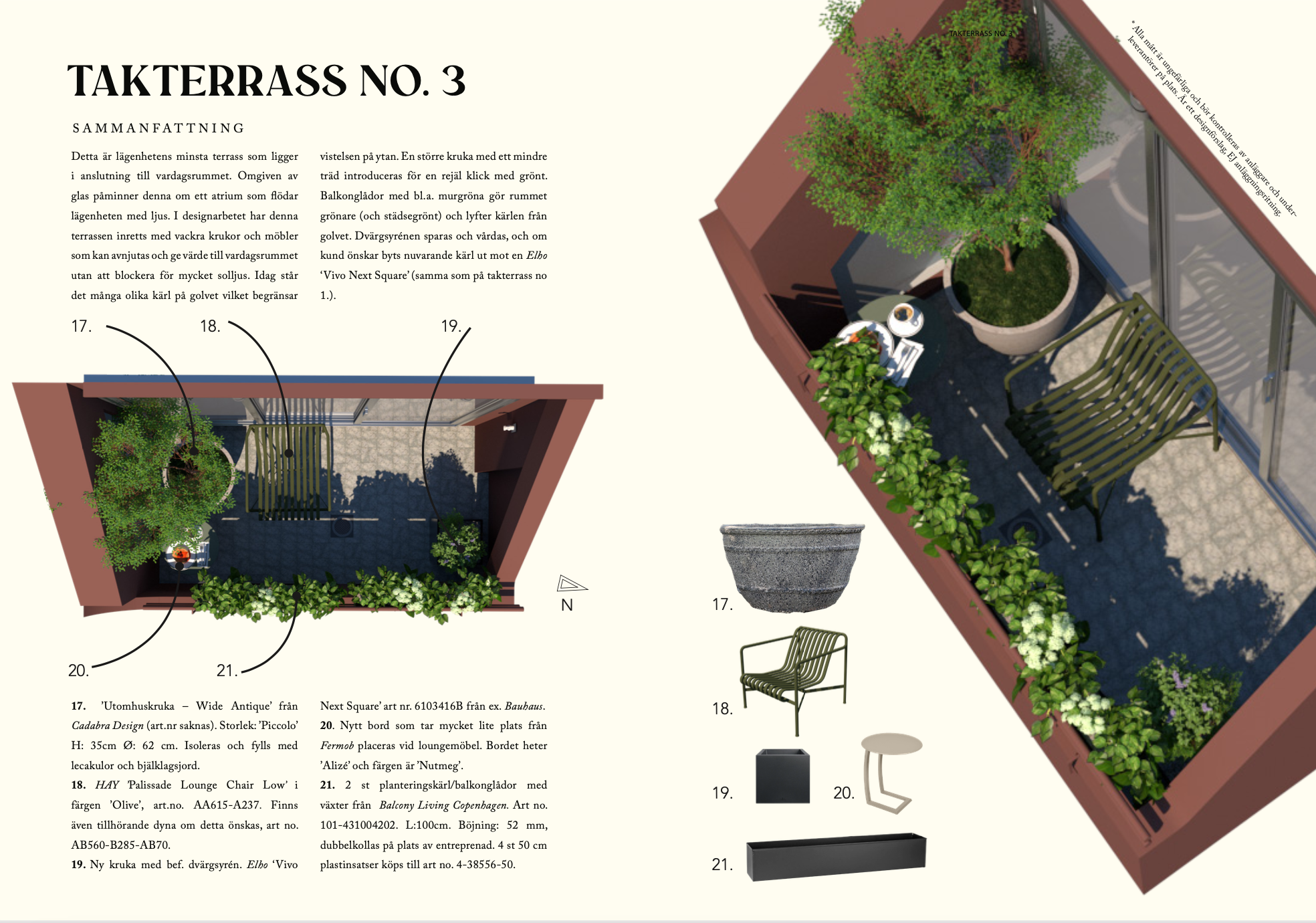 I samarbete med ‘Blue Harvest’ tog vi fram ett designförslag för en fantastisk våning med tre takterrasser på Södermalm i Stockholm. Kunden behövde hjälp med lösningar för svåra vinklar, att dölja ventilation/luftningsrör samt smarta flexibla lösningar vid nödutgångar. Med enkla medel introducerade vi en blandning av städsegrön växtlighet samt vindtåliga perenner som förgyller terrasserna året om. En balkong eller terrass kan addera värden till din inomhusmiljö året runt om den planeras varsamt!
